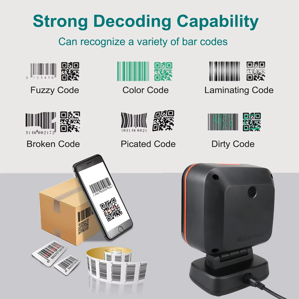 2D Omnidirectional Barcode Scanner QR Code Desktop Barcode Reader for Supermarket Auto Sense Data Matrix PDF417