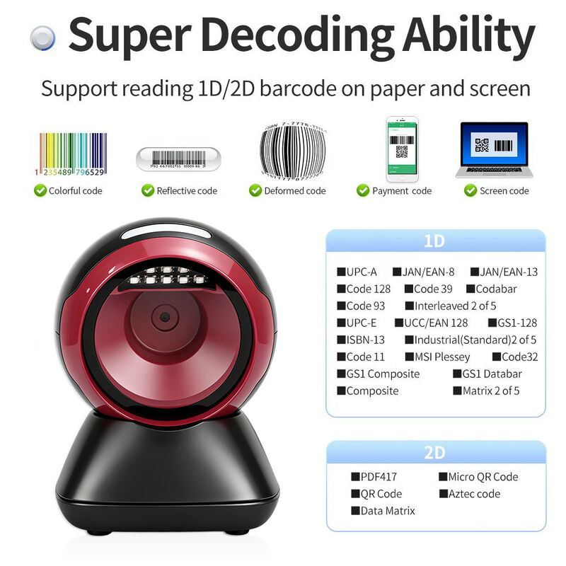 3.Supports both paper barcodes and mobile screen payment codes